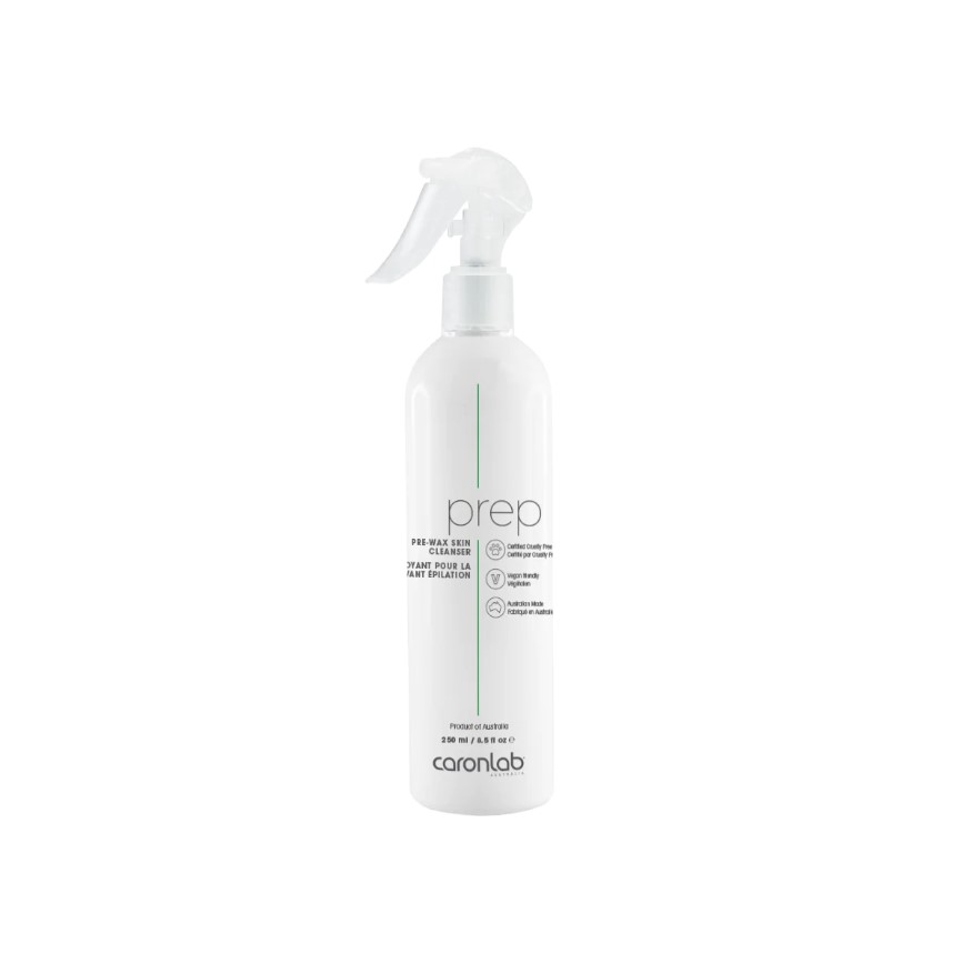 Prep – Pre-Wax Skin Cleanser is the hygienic cooling solution ideal for cleaning the skin prior to Waxing by gently removing any traces of make-up, deodorant, cream and body oil.