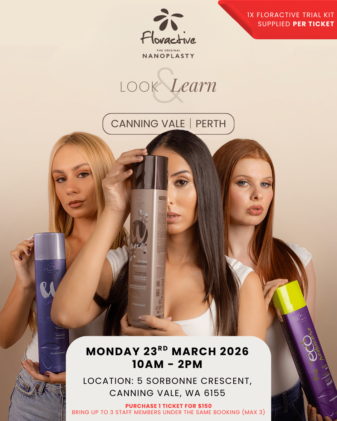 - 1 x Floractive Trial Kit included per ticket – one kit per salon
